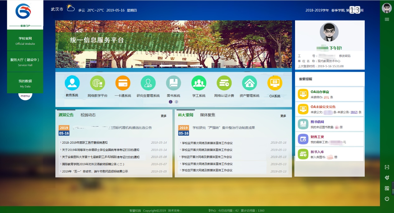 統一信息門戶平台位於(yú)學院智慧院校體系結構中的最上層(céng),是智慧院校的信息集中展示的窗口,将散落在院校互聯網、物聯網中的松散的、異構的資源信息、應用、服務、數據進行聚合和重組,構建個人事務全覆蓋、展現内容可定制、交互方式一體化的智慧型服務中心,根據用戶角色不同,智能匹配應用和服務,支持界面自定義,方便用戶及時關注個人數據及事務。