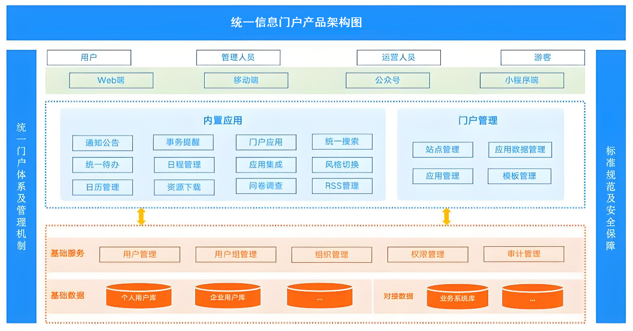平台以平台主要是由運行支撐(chēng)層(céng)、管理中心層(céng)以及發布渠道層(céng)構成,在一套平台上實現傳統門戶和新智慧門戶的統一規範管理。