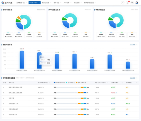 學科數據建設模塊用於(yú)針對各業務部門數據收集和整理,二級學科、課程、學術教材、教學硬件、教師和團隊,構建學科數據管理,並(bìng)爲上層的多種學科建設與管理業務提供數據支撐。