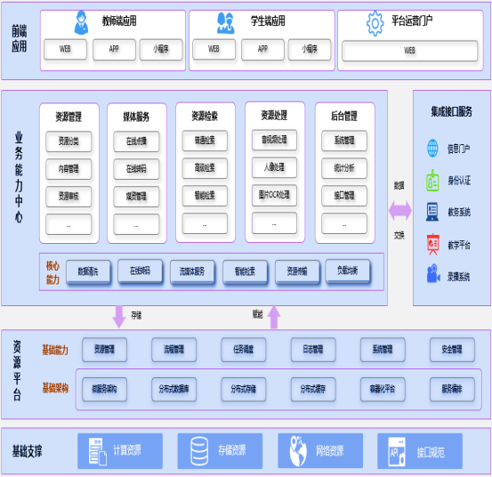非結構化數據資源管理平台能夠将學校各教學平台、錄播系統的教學資源(視 、音、圖、文)彙集在一起,實現高校多業務整合,並(bìng)且可由平台集中對數據進行存儲、運算,然後通過标準的API接口對外輸出資源查詢、數據支撐(chēng)等服務。該平台面向教師 、學校領導、學生及校外人員提供全方位的服務,增加系統服務大衆的屬性,促進就高校信息化環境的便捷。